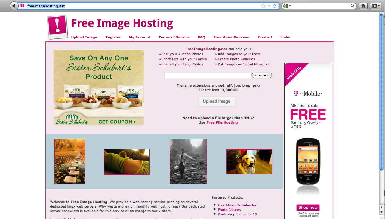 Well hello there. To make it short, I've been pretty busy with school stuff, so that explains why I've not posted for a very long time. Well anyways, let's get started with this stuff. Basically, I made an animated gif on Stykz and I'm going to upload it to a website. Just to let you know, this isn't the only way to upload an animated gif to your blog. in fact, you can just upload the gif straight to your post, but today I'm showing you the website-uploading way. Well anyways, first we're going to go to http://freeimagehosting.net/. When you go there, you should see this: